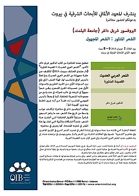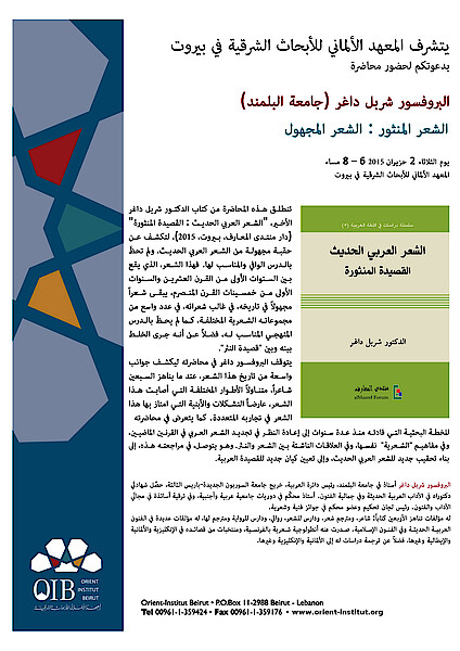 تنطلق هذه المحاضرة من كتاب الدكتور شربل داغر الأخير، "الشعر العربي الحديث: القصيدة المنثورة" (دار منتدى المعارف، بيروت، 2015)، لتكشف عن حقبة مجهولة من الشعر العربي الحديث، ولم تحظَ بالدرس الوافي والمناسب لها. فهذا الشعر، الذي يقع بين السنوات الأولى من القرن العشرين والسنوات الأولى من خمسينات القرن المنصرم، يبقى شعراً مجهولاً في تاريخه، في غالب شعرائه، في عدد واسع من مجموعاته الشعرية المختلفة، كما لم يحظَ بالدرس المنهجي المناسب له، فضلاً عن أنه جرى الخلط بينه وبين "قصيدة النثر"