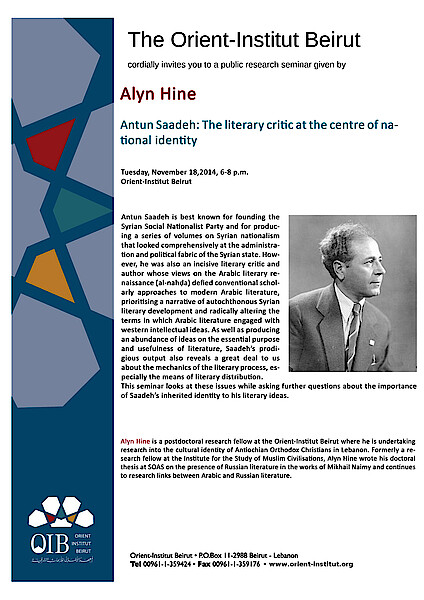 This seminar looks at these issues while asking further questions about the importance of Saadeh’s inherited identity to his literary ideas.
