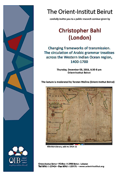 In this paper, I will look at the succession of nodal points from the Red Sea region to Western India as a network that was established during the 15th century as a commonly used transoceanic connection for the movement of merchants, scholars and so forth, in order to trace different histories of circulation over the subsequent centuries from the field of the philological disciplines, in particular Arabic grammar books. I will argue that paratextual elements on these manuscripts can provide a microhistorical perspective to analyse changing frameworks of textual transmission, foreshadowing larger transformations in the fields of cultural exchange and learned encounters across the early modern Western Indian Ocean region.