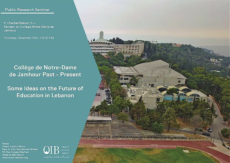 In the lecture by Père Charbel Batour, we will get an overview of the history of the Collège and also learn more about the current situation and goals. Our speaker will also share some of his ideas on the future of education in Lebanon in the second part. Especially in the current crisis situation, the education landscape is facing great challenges that are worth talking about.