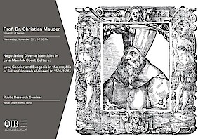 This talk analyzes the texture, richness, and complexity of intellectual life at the late Mamluk court. By focusing on how members of the court voiced, affirmed, and negotiated various identities in the areas of law, gender, and Quranic exegesis, the talk demonstrates that late Mamluk court culture was characterized by a much higher level of internal diversity and intellectual activity than heretofore assumed. This analysis of Mamluk court culture is based on a close reading of accounts of the majālis or learned salons that the penultimate Mamluk ruler Qāniṣawh al-Ghawrī convened at the Cairo Citadel during most of his reign, which lasted from 1501 to 1516. The accounts of these events allow unique insights into how members of al-Ghawrī’s court developed novel intellectual strategies that addressed the legal, political, and theological challenges of the day and contributed to a vibrant scholarly life during a period that is still all too often associated with an alleged cultural decline of the Islamic world.