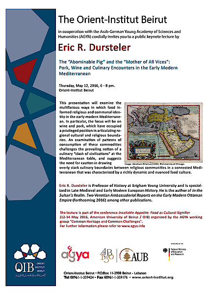 This presentation will examine the multifarious ways in which food informed religious and communal identity in the early modern Mediterranean. In particular, the focus will be on wine and pork, which have occupied a privileged position in articulating regional cultural and religious boundaries. An examination of patterns of consumption of these commodities challenges the prevailing notion of a culinary “clash of civilizations” at the Mediterranean table, and suggests the need for caution in drawing overly stark culinary boundaries between religious communities in a connected Mediterranean that was characterized by a richly dynamic and nuanced food culture.