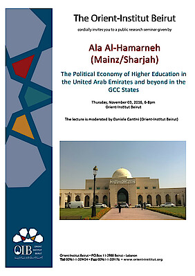 In my talk I will address the above mentioned and other aspects of development of higher education in the UAE based on the results of research in the UAE and other GCC states. By exemplifying the UAE, parallels, generalizations and specifications within the GCC higher education sectors are going to be highlighted. Strategies of higher education and models of internationalization and privatization are at the core of the presentation.