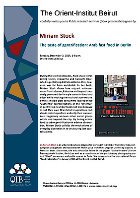 During the last two decades, Arab snack stores selling falafel, shawarma and halloumi flourished in gentrifying districts in Berlin. This, however, was far from accidental. In her book, Miriam Stock shows how migrant entrepreneurs from Lebanon, Palestine and beyond creatively promoted Berlin-style tastes in food and décor while invoking their cultural authenticity. Berlin`s middle class consumers favored these “authentic” representations of the “Oriental” in gentrifying neighborhoods not only because it met their own Orientalist imaginations, but also in order to perform and reify their own cultural hegemony vis-à-vis other social groups within and beyond the city. By linking ethnic food to urban gentrification in a dense observation, Miriam Stock unfolds the mechanisms of everyday distinction in re-structuring late capitalist cities.