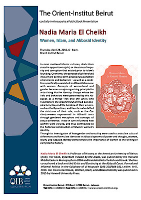 Nadia Maria El Cheikh is Professor of History at the American University of Beirut (AUB). She received her Ph.D. in History and Middle Eastern Studies from Harvard University in 1992 and has served as Director of the Center for Arab and Middle Eastern Studies and as Chair of the Department of History and Archaeology at AUB. Her book, Byzantium Viewed by the Arabs, was published by the Harvard Middle Eastern Monographs in 2004 and translated into Turkish and Greek. She has co-authored a book entitled Crisis and Continuity at the Abbasid Court. Formal and Informal Politics in the Caliphate of al-Muqtadir (295-320/908-932), Leiden: Brill, 2013. Her most recent book, Women, Islam and Abbasid Identity was published in 2015 by Harvard University Press.