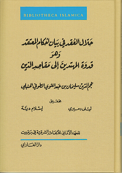 The Ḥallāl al-ʿuqad fī bayān aḥkām al-muʿtaqad (Untying the Knots in Expounding the Principles of Faith), also known as Qudwat al-muhtadīn ilā maqāṣid al-dīn (The Exemplar of the Rightly Guided to the Objectives of Religion), is an early fourteenth-century theological treatise. The Ḥallāl is perhaps the only surviving text in which al-Ṭūfī expounds his theology in a brief and systematic manner with an intention to provide a short and uncomplicated outline of the principles of faith. Its author, Najm al-Dīn al-Ṭūfī (d. 716/1316) is a key Ḥanbalī scholar of the Mamluk period. His writings manifest considerable creativity and erudition.