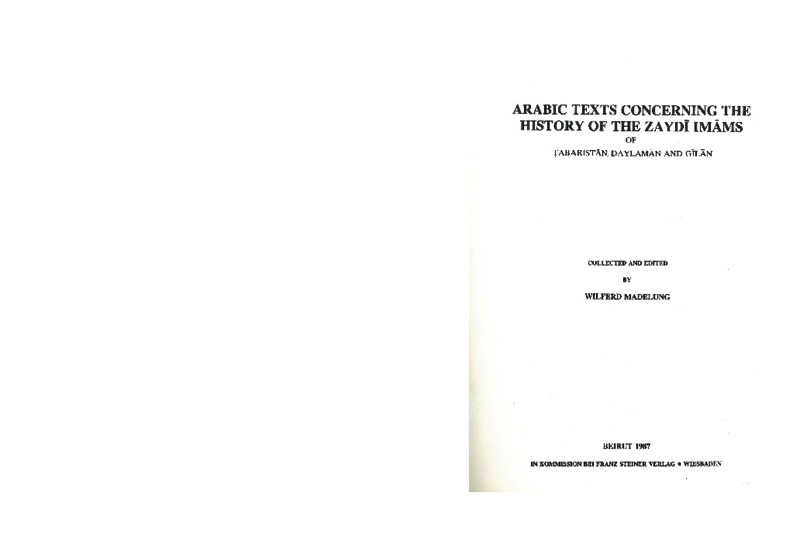 Prof. Madelung provides source material concerning the history of ʿAlid rule and Zaydī community in south of the Caspian Sea from the 3rd/9th to the 7th/13th century. Despite the geographical distance to the Yemen Zaydī imamate, the two communities kept in touch with each other. For this reason, a great part of the history of the Caspian Sea community is preserved within the Yemen community.