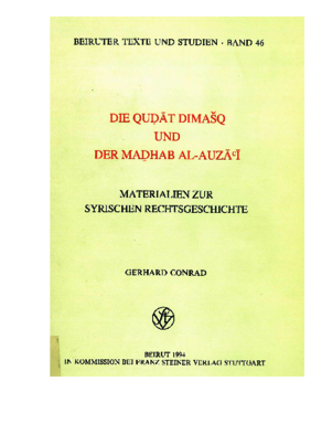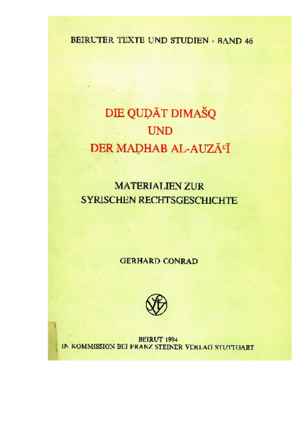 This publication deals examines the maḏhab of al-Auzāʿī in Damascus, a scholar who lived in the 8th century in Syria. This maḏhab flourished in Syria, the Maghreb and al-Andalus, but was overcome by the Maliki School in the 9th century.