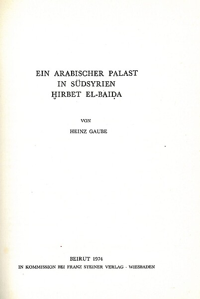 In his publication, Prof. Gaube analyses the ruin of Ḫirbet el-Baiḍa that is located in the southeast area of Ḥarrāt. After introducing the ruin by describing the surrounding area, Gaube describes the architectural characteristics of the former castle and examines the results in the background of the Syrian architecture.