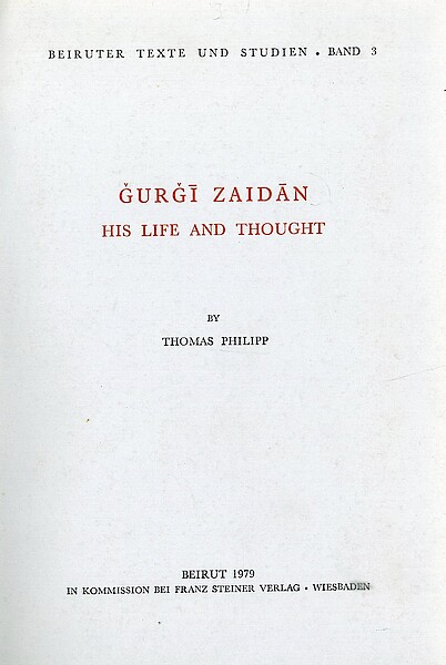 In this biography, Thomas Phillip reconstructs Gurgī Zaidān’s life and intellectual development. Zaidān was an Arab Christian in Greater Syria in the late 19th century. Influenced by the cultural and literary renaissance in Egypt and the Levante, Zaidān was an historical novelist, journalist, publisher, and founder of the journal al-Hilāl.