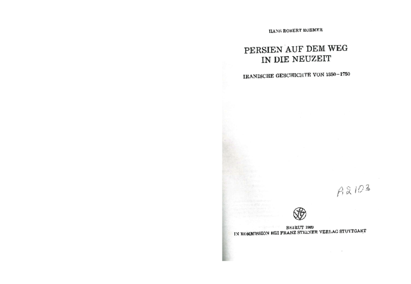 In his publication, Prof. Roemer illustrates the history of Persia from the 14th to the 18th century. Beginning with the Persian Empire after the invasion of the Golden, he analyses the rise and fall of the Safavid Empire in these 400 years of Persian history.