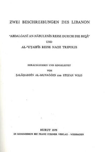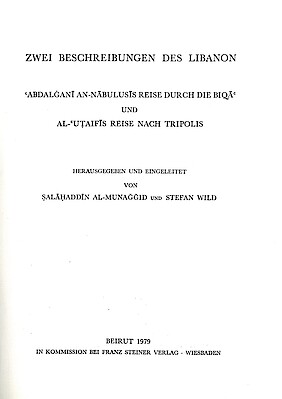 The publication of Prof. Wild focuses on two travel accounts by ʿAbdalġanī an-Nābulusī and al-ʿUṭaifī. An-Nābulusī’s report portrays the journey to the pilgrim sites in the Biqāʾ valley in the year 1100/1689, including a most detailed description of the Baalbek ruins.