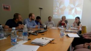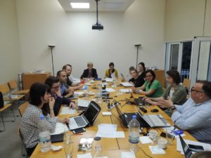 Members of the research team presented outlines of their individual research case studies, highlighting their own experiences with archive materials and interview partners. The team demonstrated their ideas of team work and research cluster building, and discussed the further conceptualization of the research as a whole. Dr. Olga Nefedova, who is studying the knowledge relations and networks of the Iraqi fine art students in the Soviet Union, explained the importance and limitations of using various types of interview techniques and concepts to receive comprehensive information. Dr. Mikuláš Pešta from Charles University in Prague, who is working on the image of Prague as an intellectual hub of knowledge production and international publications in the Socialist era, explained the importance of biographical research to his case study. Dr. Constantin Katsakioris discussed the comprehensive relations in higher education between Algeria and some countries of the Eastern Block, namely the Soviet Union and Czechoslovakia. The research of Dr. Dorota Woroniecka-Krzyżanowska aims to explore the relations and impacts of the Polish architectures and architecture institutes on the urban design and esthetics of Iraqi cities, and the impact of the Iraqi architecture students who studied in Poland on the (re-)configuration of knowledge relations in an ideoscape. Dr. Zaur Gasimov presented his research on the production of knowledge concerning Iran in institutions of higher learning in Poland and Hungary by two intellectual Iranian communists in exile. He pointed out the importance of discussing the ideoscape as a space of knowledge relations and productions in all its complexity and interaction. Elmin Alyiev explained the differences between the political and historical framing of the Turkish and Iranian students in the Soviet Union, where international relations, the “Azerbaijani discourse”, the Turkish internal politics, exiles and migration redefine the relations in the ideoscape between the two countries and the Soviet Union. The research primarily done and presented by Olga Nefedova, Zaur Gasimov and Elmin Alyiev demonstrates the importance of oral history and biographical research, and thus delivered a solid base for discussions on field research and research clusters.